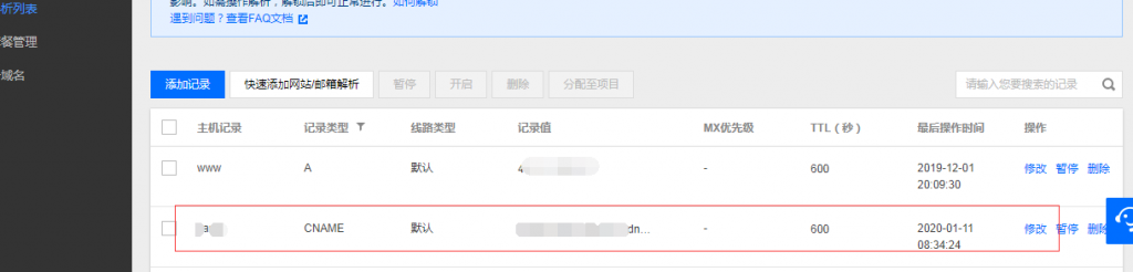 6、进行腾讯云平台云解析管理界面,将自己的域名解析CDN 的CNAME