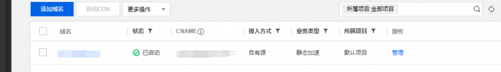 5、进入腾讯云平台,CDN域名管理界面,复制你的CNAME